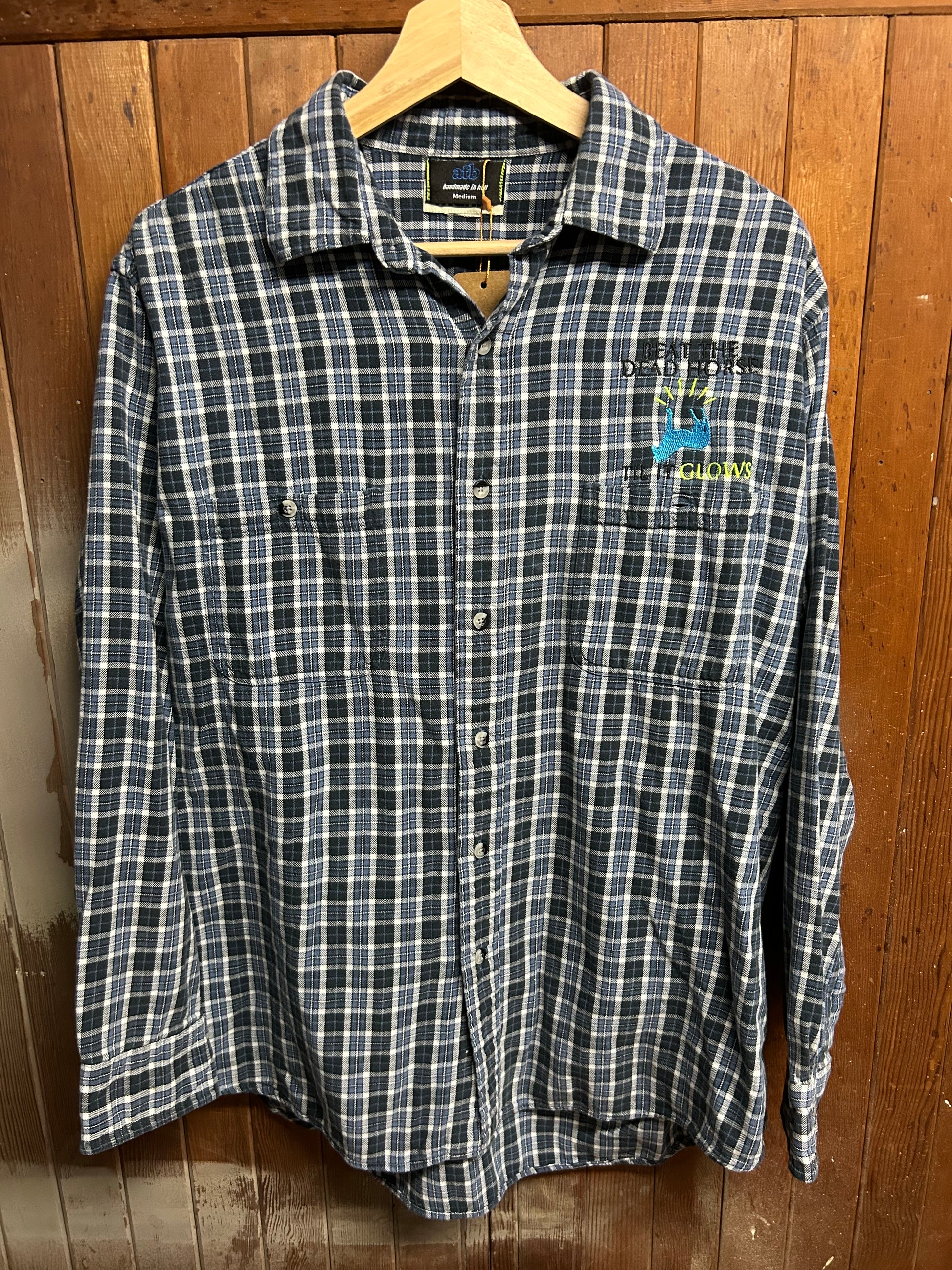 *this piece is presented on a vintage garment and may display stains, small rips/holes, and/or general signs of wear and age. all too blue asks that you appreciate that this garment has lived an entire life of its own and continue to give it new life for years to come.*