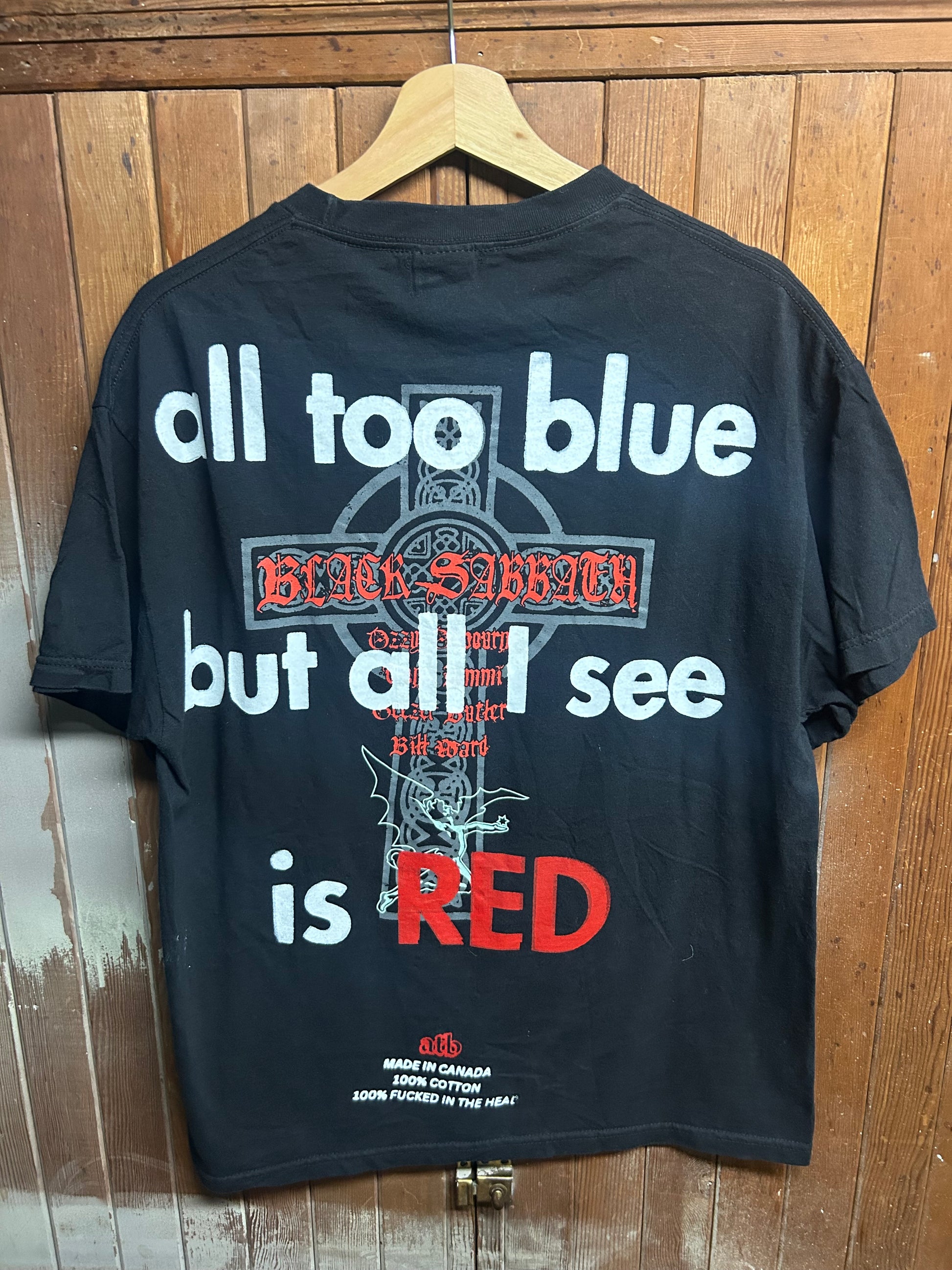 *this piece is presented on a vintage garment and may display stains, small rips/holes, and/or general signs of wear and age. all too blue asks that you appreciate that this garment has lived an entire life of its own and continue to give it new life for years to come.*