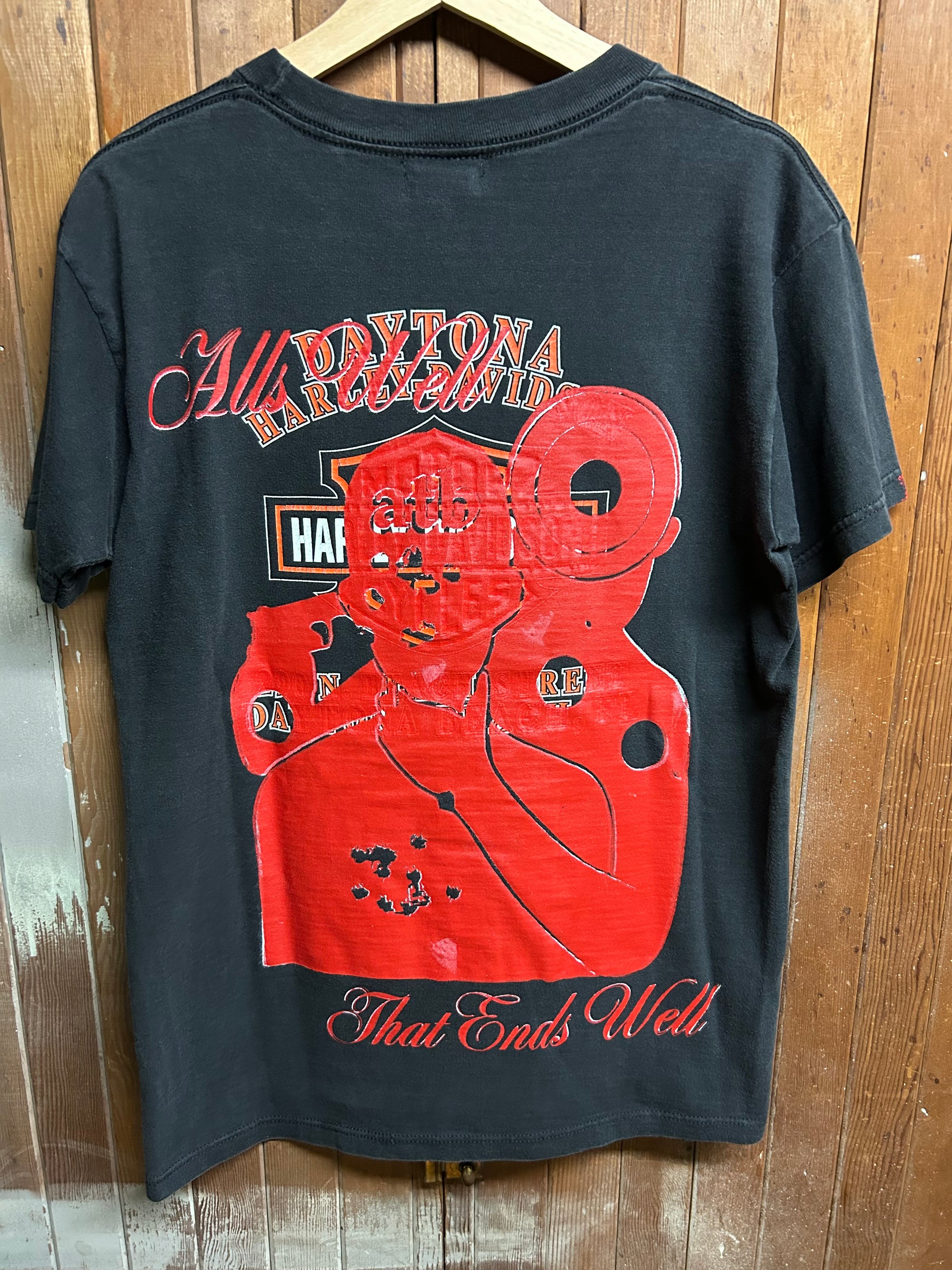 *this piece is presented on a vintage garment and may display stains, small rips/holes, and/or general signs of wear and age. all too blue asks that you appreciate that this garment has lived an entire life of its own and continue to give it new life for years to come.*
