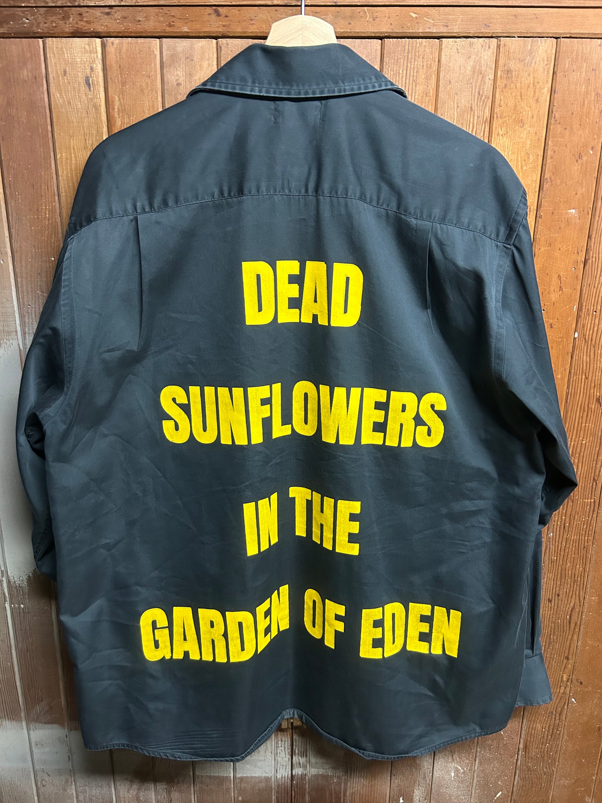 Self embroidered design and hand screenprinted graphics with water based ink. Sewn in handmade in hell woven tag.