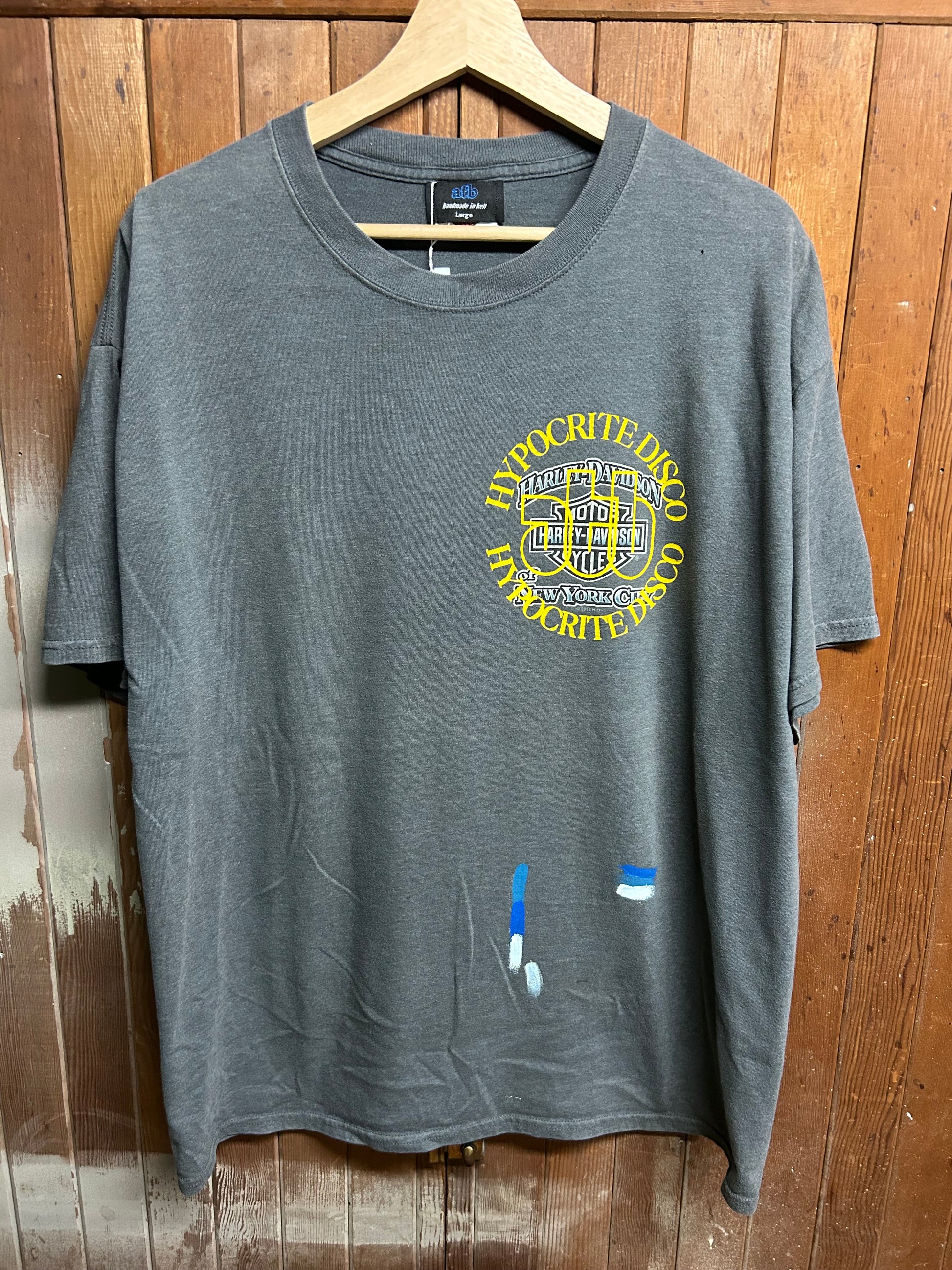 Hand screenprinted graphics with water based ink. Sewn in handmade in hell woven label.