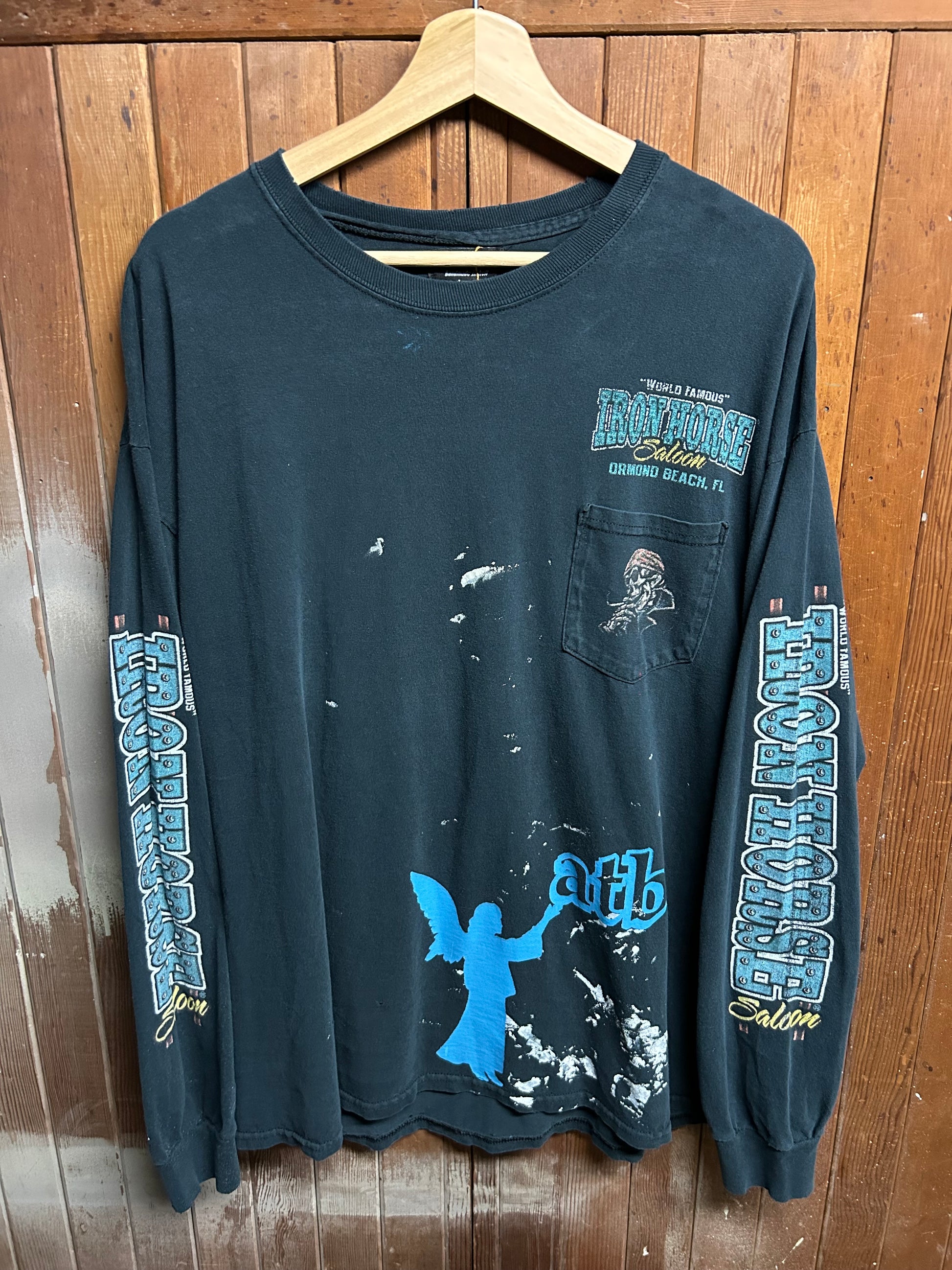 *this piece is presented on a vintage garment and may display stains, small rips/holes, and/or general signs of wear and age. all too blue asks that you appreciate that this garment has lived an entire life of its own and continue to give it new life for years to come.*