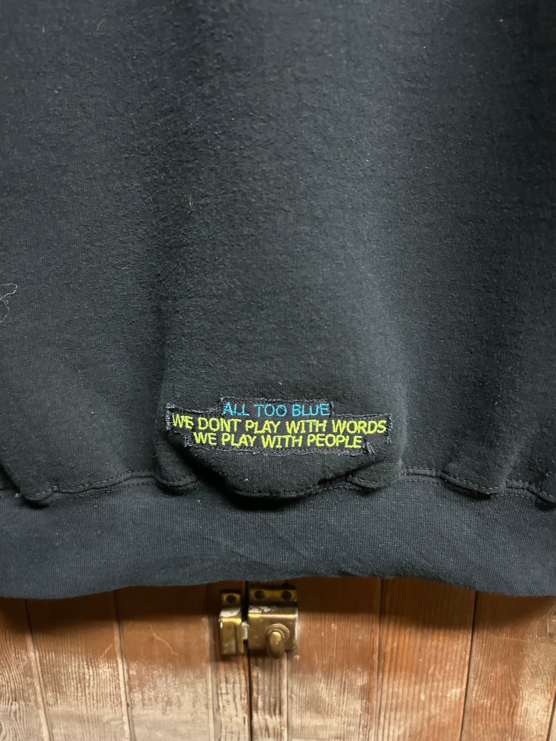 *this piece is presented on a vintage garment and may display stains, small rips/holes, and/or general signs of wear and age. all too blue asks that you appreciate that this garment has lived an entire life of its own and continue to give it new life for years to come.*