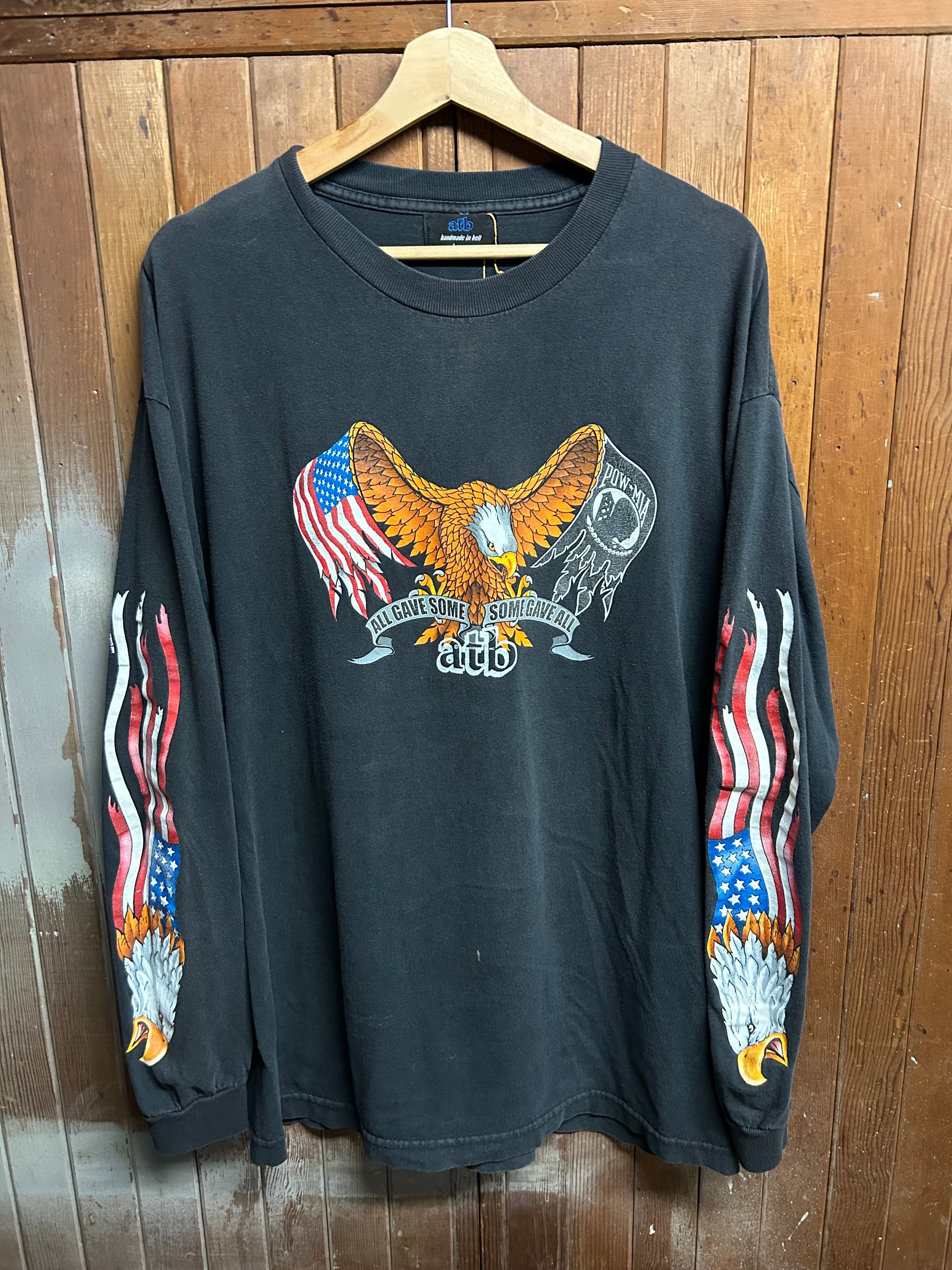 Hand screenprinted graphics with water based ink. Sewn in handmade in hell woven tag.
